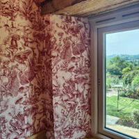 Stella McCartney x Cole & Son takes Stella McCartney’s Summer 2022. Fungi Forest toile de Jouy print & creates a new wallcovering offering in rich tones of Burgundy and Navy. The wallpaper has been printed on a new eco substrate derived from 79% renewable fibres whose manufacturing process uses 30% less greenhouse gases than traditional non-woven wallcoverings. Making Fungi Forest Cole & Son’s most sustainable wallpaper to date. Launched at Salone del Mobile 2022. Fungi Forest wallpaper formed the backdrop to Stella McCartney’s Future of Fashion exhibition.